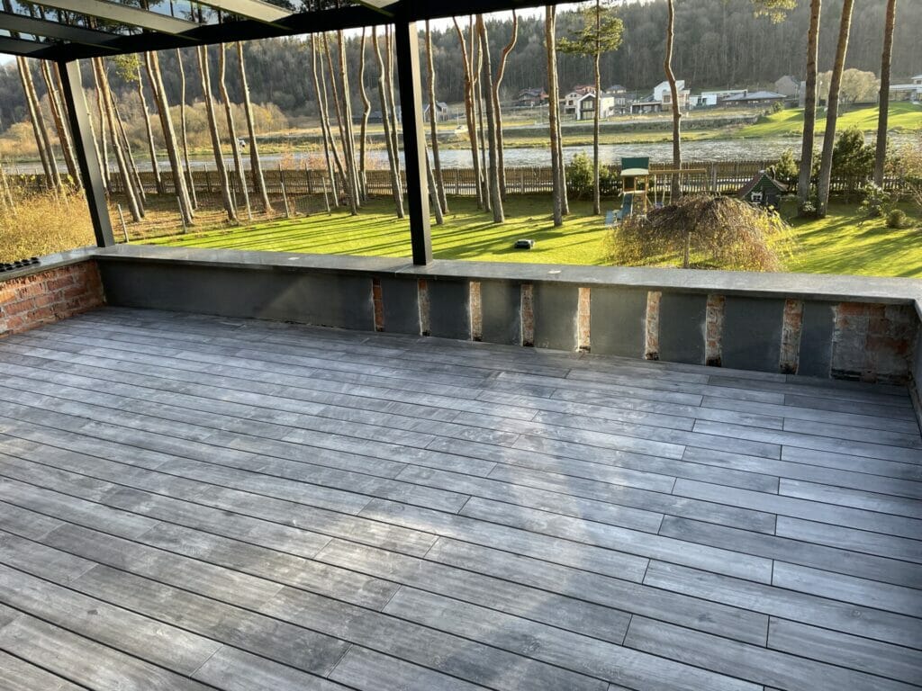 Akį traukiančios balkono grindys įrengtos su GRAD concept tvirtinimo sistema ir keramikinėmis DEX lentomis.GRAD® PASLĖPTO TVIRTINIMO SISTEMA.