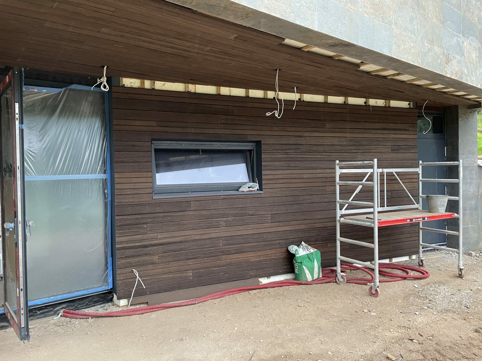 Gažus fasado ir stogo pakalimo sprendimas su MOSO Bamboo X-treme dailylentėsmis. kurios atitinka aukščiausios klasės ES normas tenkinatį patvarumą.