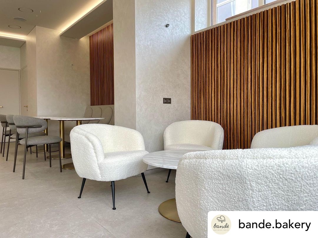 Karamėlė ir plakta grietinėlė galvoje ima suktis užėjus į šią jaukią ir stilingą kepyklėlę Palangoje. Tiesiog tobulai derantys karamelinės spalvos MOSO bambuko tašeliai su pieno baltumo kėdėmis.