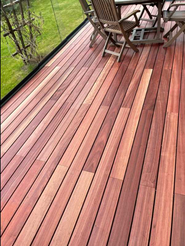 Įspūdinga padouk terasa sumontuota ant grad concept terasos sistemos.PADOUK TERASINĖS LENTOSGRAD® CONCEPT PASLĖPTO TVIRTINIMO TERASOS SISTEMA