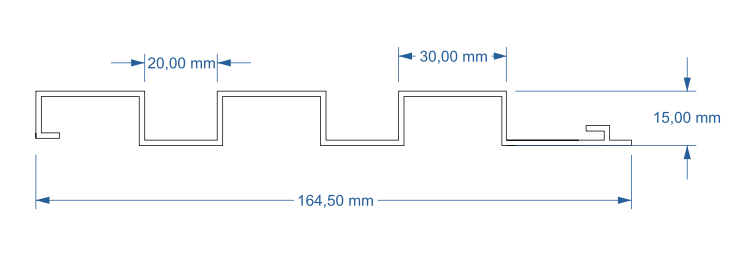 Šiuolaikiško dizaino aliuminio profilis padengtas atsparia oro sąlygoms PVC plėvele – puikiai tinka naudoti sudėtingomis lauko sąlygomis arba kai keliami aukšti degumo reikalavimi vidaus sienų/lubų apdailos medžiagoms.