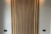 Prabangaus, stilingo restorano interjero luboms buvo pasirinktas šiuolaikiškas sprendimas – ąžuolo lukšto tašai, tvirtinami ant Grad® concept sistemos.