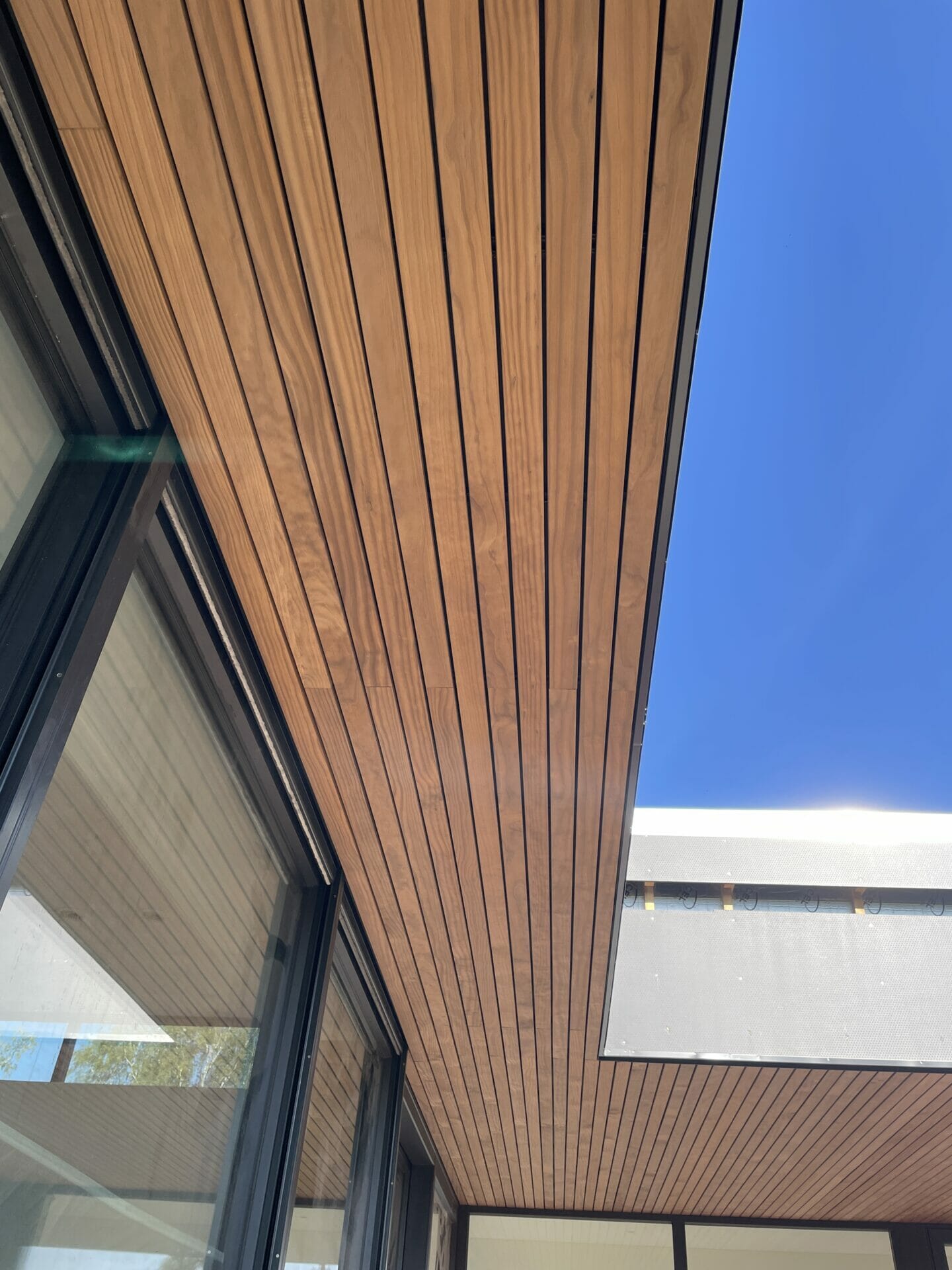 Thermory termo radiata pušis 65×20 “klik” principu sumontuota ant Grad concept Start rail 71 aliuminio profilio.